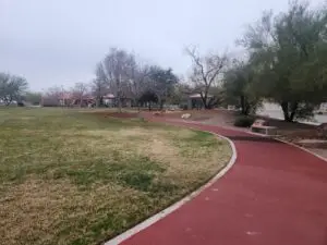 Another option is to take a slight detour from the trail on the south side of Lake Mead Blvd. From the trail, head west and cross Buffalo Dr. You’ll see the entrance to Pueblo Park. Pueblo Park offers a full 5k distance, so you might not need the whole thing. The disadvantage is crossing Buffalo and waiting for the light.