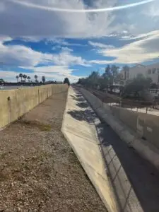 You’ll end up at the south end of Bettye Wilson Soccer Complex on Lake Mead Blvd. There’s a bridge to cross Lake Mead without interruption or danger. Turn around and follow the trail back. You may be a smigde long – if that’s the case, turn around before crossing the bridge.
