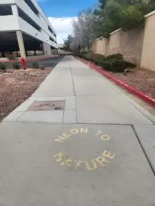 Follow the sidewalk and keep an eye out for white Lone Mountain Trail signs, beige Lone Mountain Trail pillars, and signs on the ground as well.